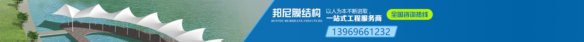 邦尼膜結構采用高強度柔性薄膜材料與支撐體系相結合形成具有一定剛度的穩定曲面,能承受一定外荷載的空間結構形式。其造型自由輕巧、阻燃、制作簡易、安裝快捷、節能、安全等優點,這種結構形式特別適用于大型體育場館、入口廊道、小品、公眾休閑娛樂廣場、展覽會場、購物中心等領域。